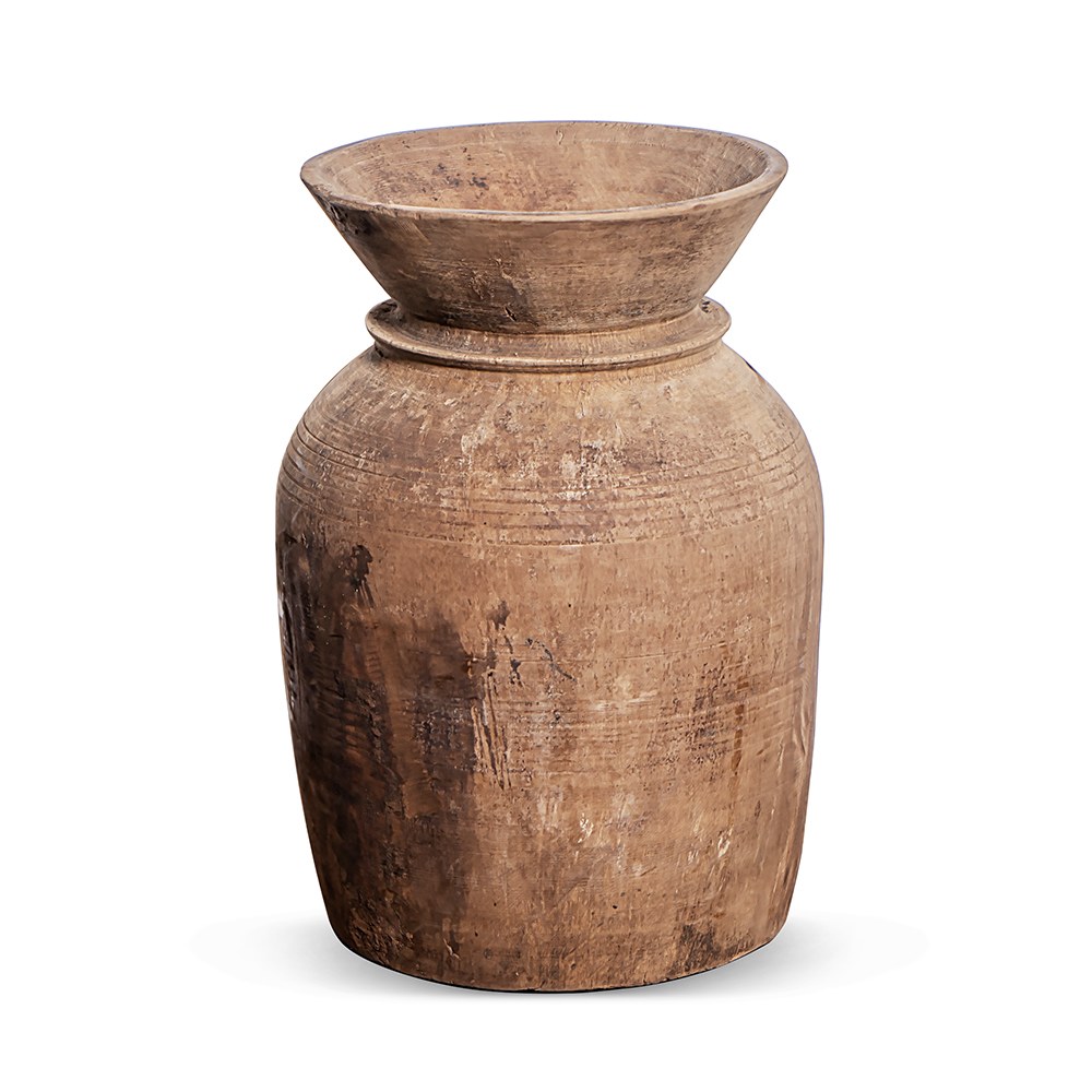 多年來他們不再使用這些木製頸盆,所以它們被儲存了很多年。為了收集它們,人們必須在隱蔽的小山村裡挨家挨戶收集。富有文化洗練過的復古木罐是最美妙、質樸的展示品,非常適合放置乾燥花或人造花。