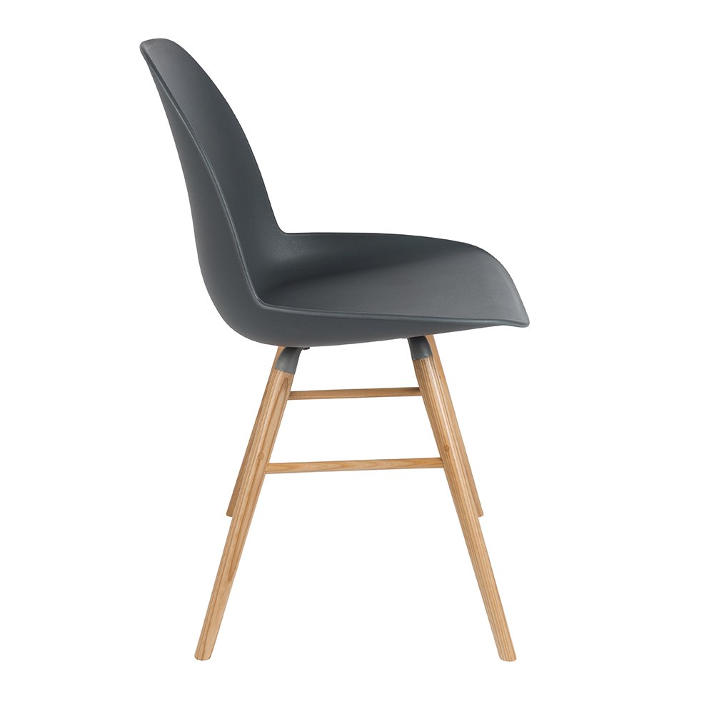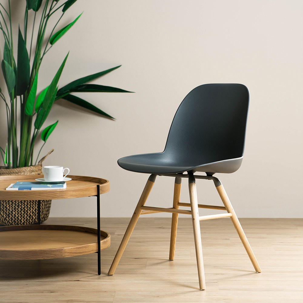 艾伯特簡約弧形單椅(Albert Kuip Chair) 的造型是經過多次3D模擬過程所設計而成,再以聚丙烯塑料壓模成型,將符合人體工學的曲線型態直接的呈現,並輔以重量較輕的鋁製支架加強結構性,椅腳使用淺色的梣木搭配呈現清新的氣質,無論是作為餐椅、工作椅都很好搭配在空間中。