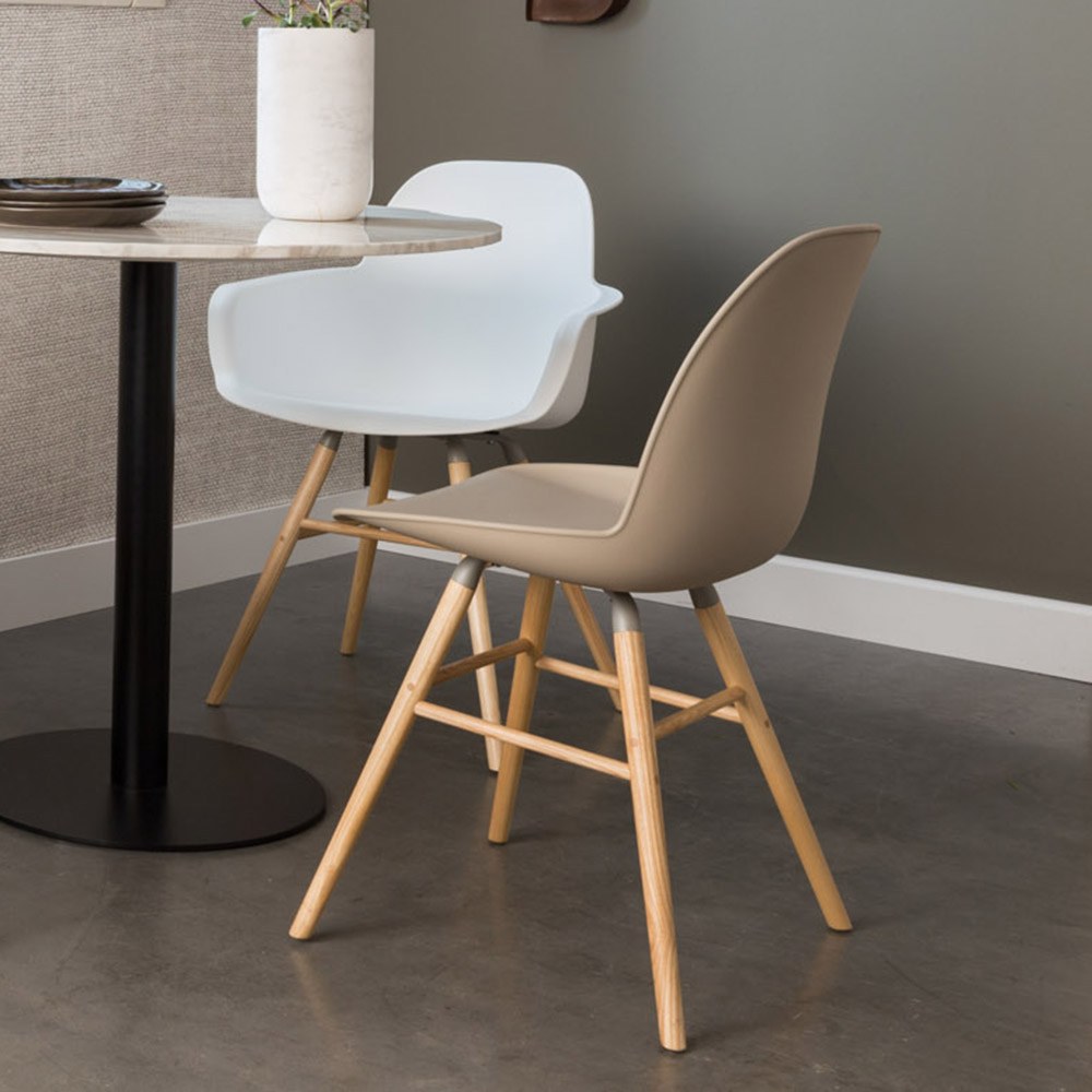 艾伯特簡約弧形單椅(Albert Kuip Chair) 的造型是經過多次3D模擬過程所設計而成,再以聚丙烯塑料壓模成型,將符合人體工學的曲線型態直接的呈現,並輔以重量較輕的鋁製支架加強結構性,椅腳使用淺色的梣木搭配呈現清新的氣質,無論是作為餐椅、工作椅都很好搭配在空間中。